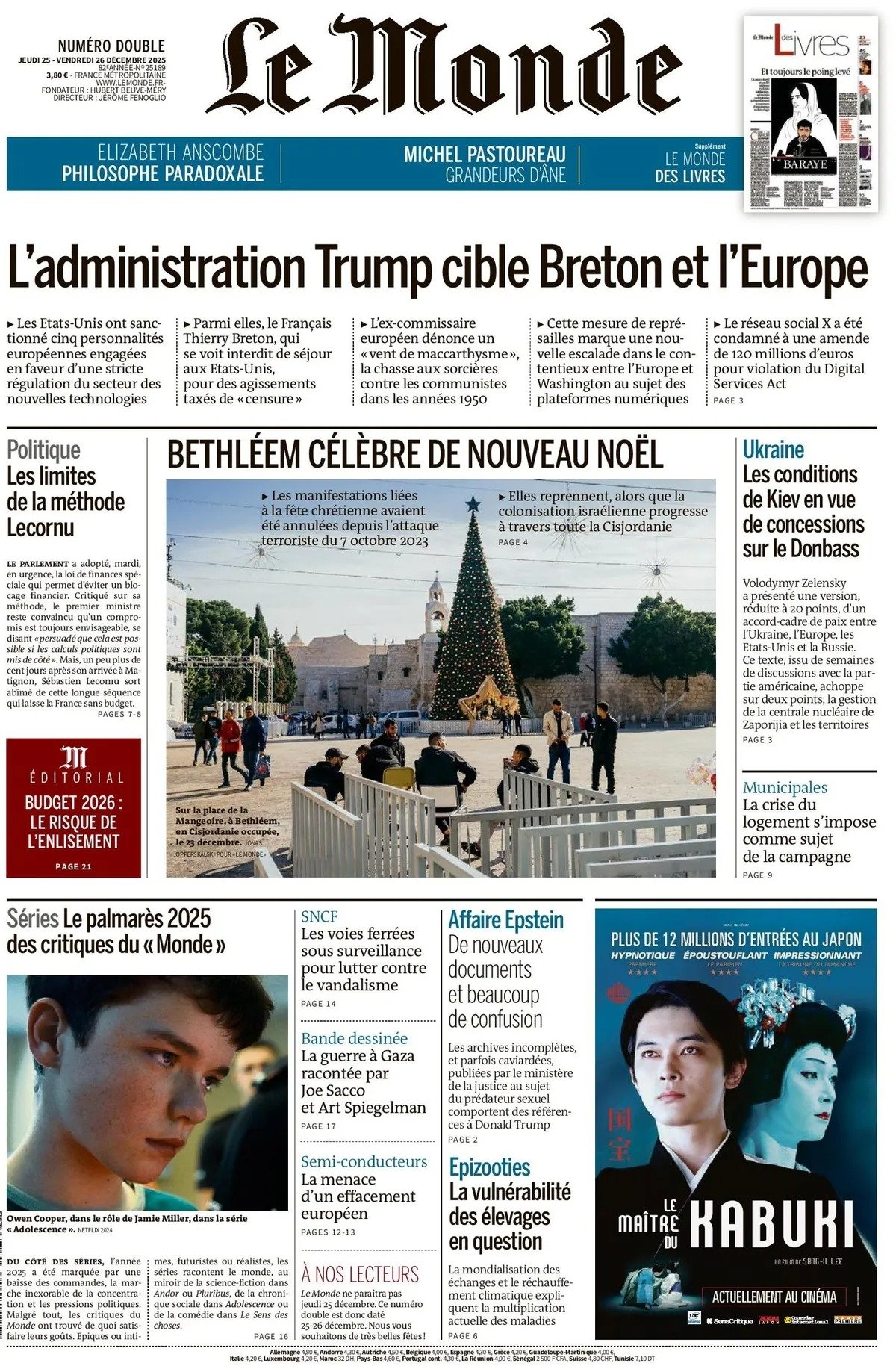 Portadas de la prensa internacional de este viernes 26 de diciembre de 2025